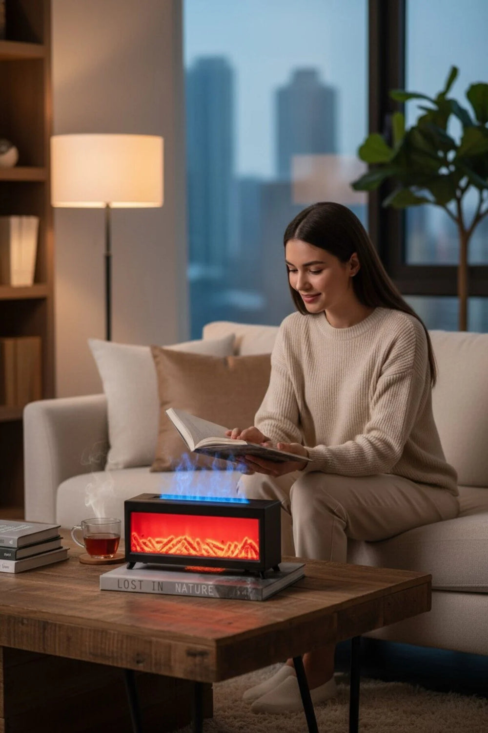 Alev Efektli Dekoratif Şömineli Hava Nemlendirici (Isıtmasız)