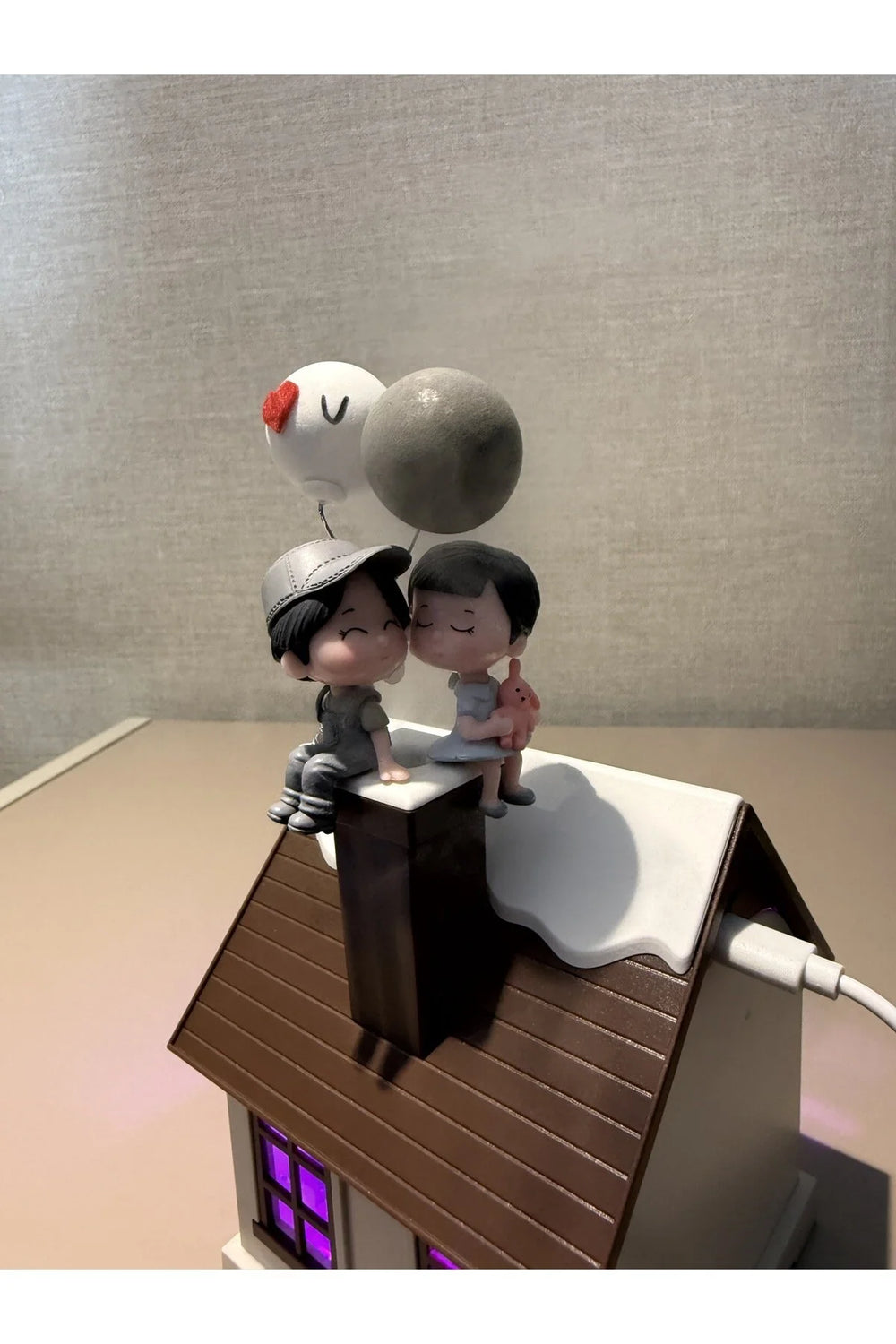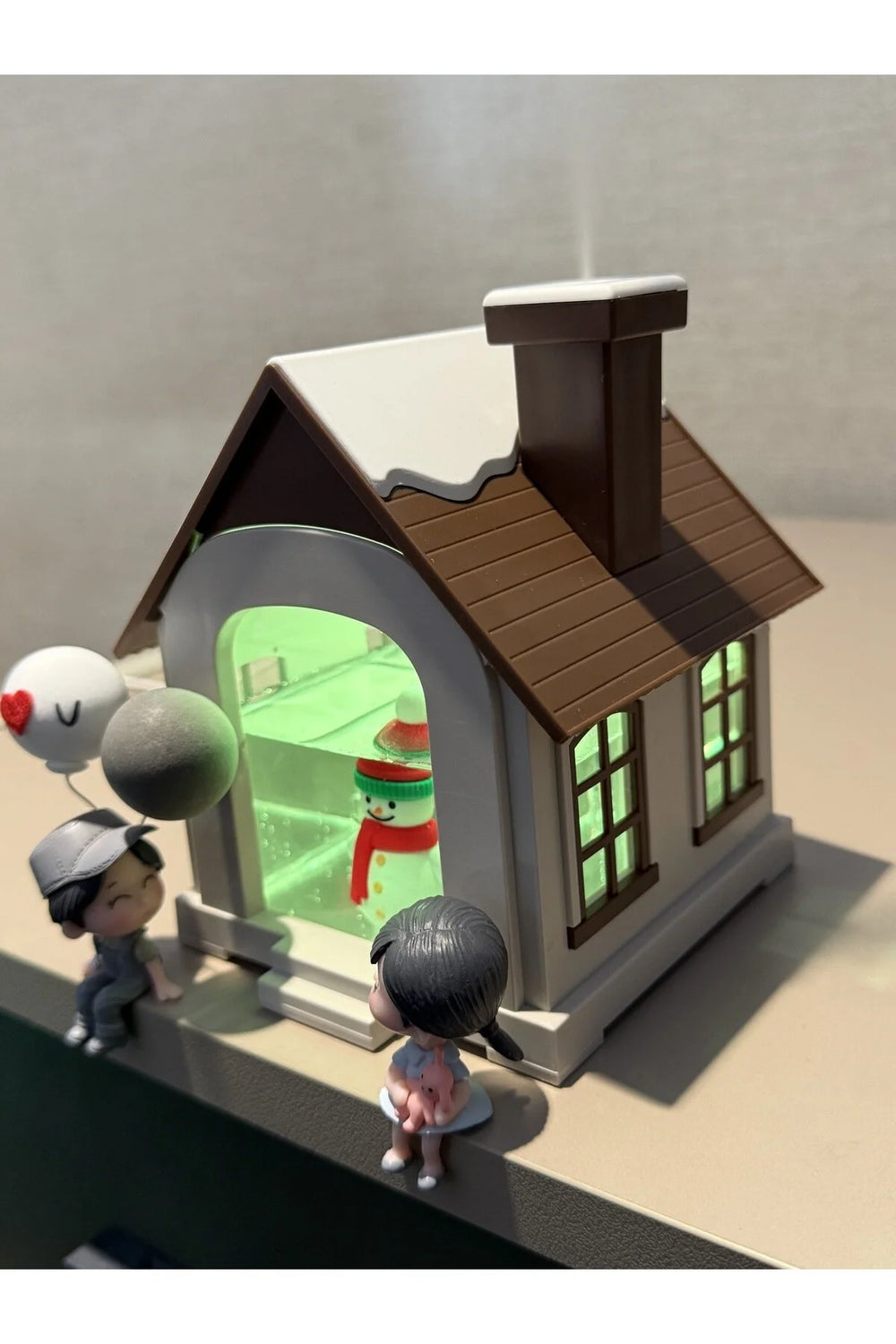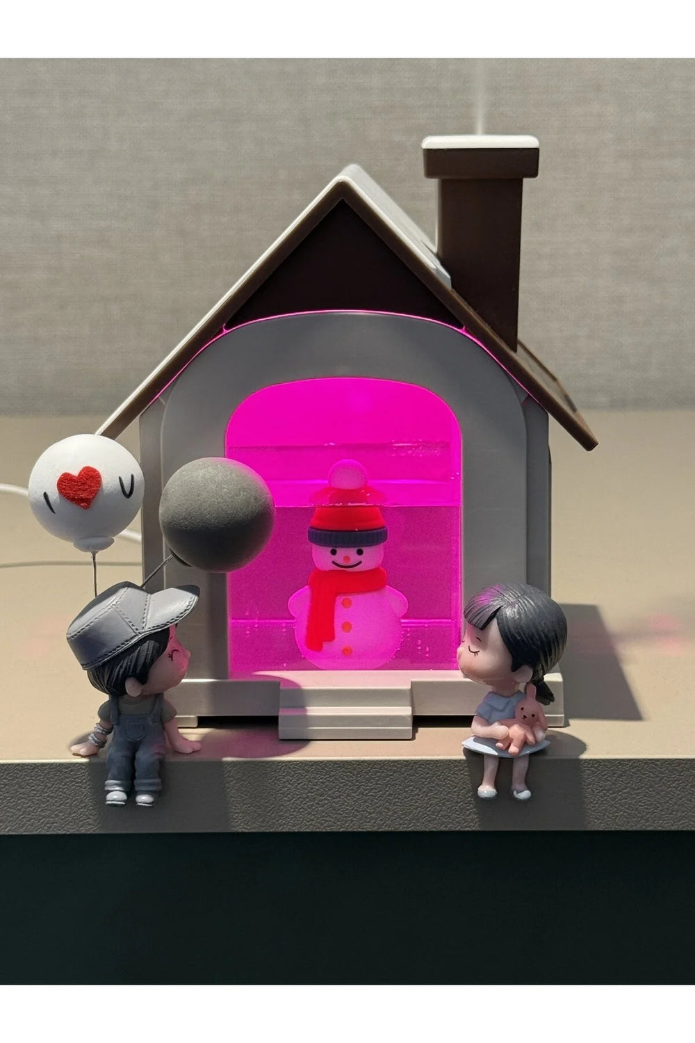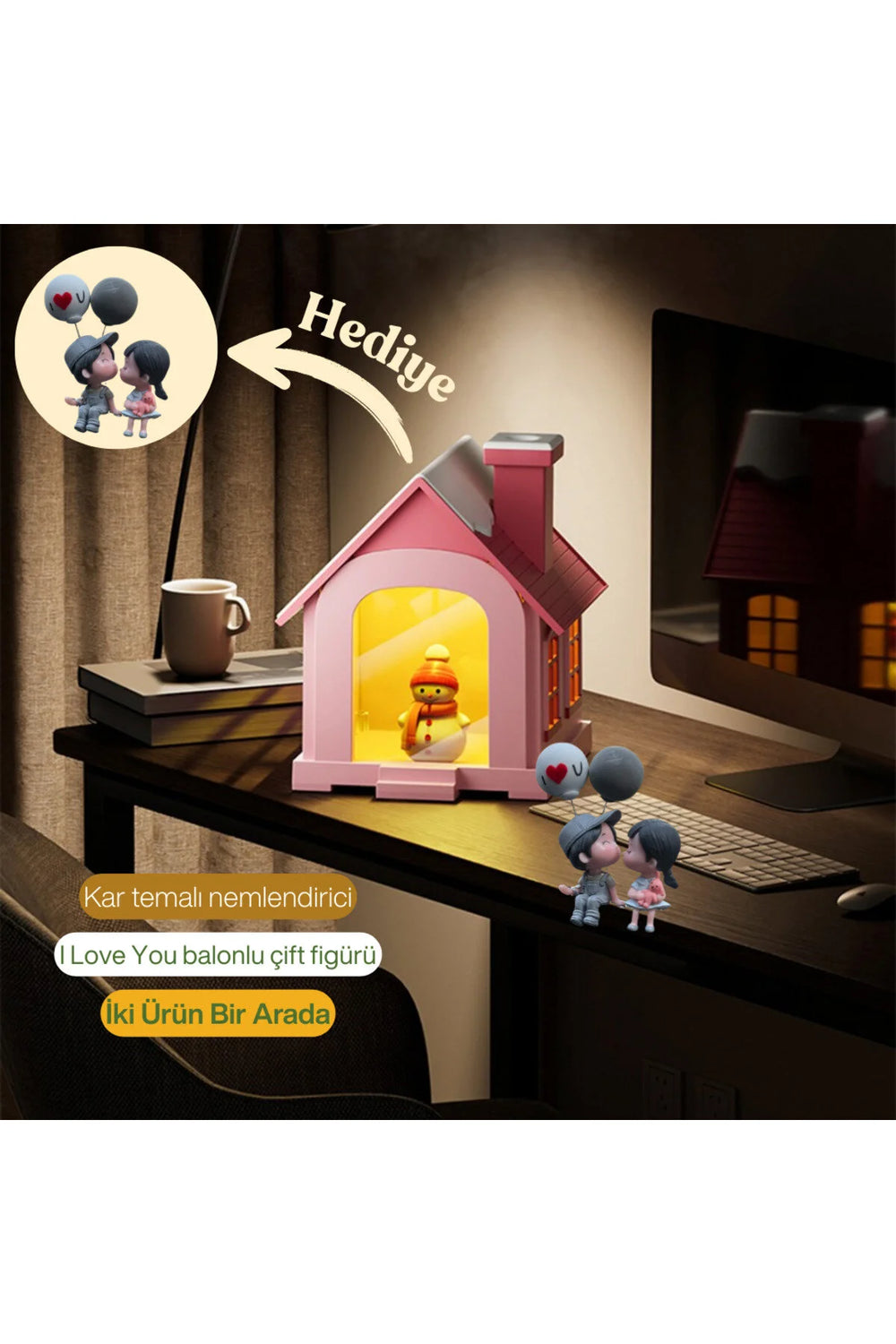 Kar Tasarımlı LED Işıklı Ev & Sevimli Çift Figürlü Hediye Seti – Gece Lambası & Buhar Nemlendirici