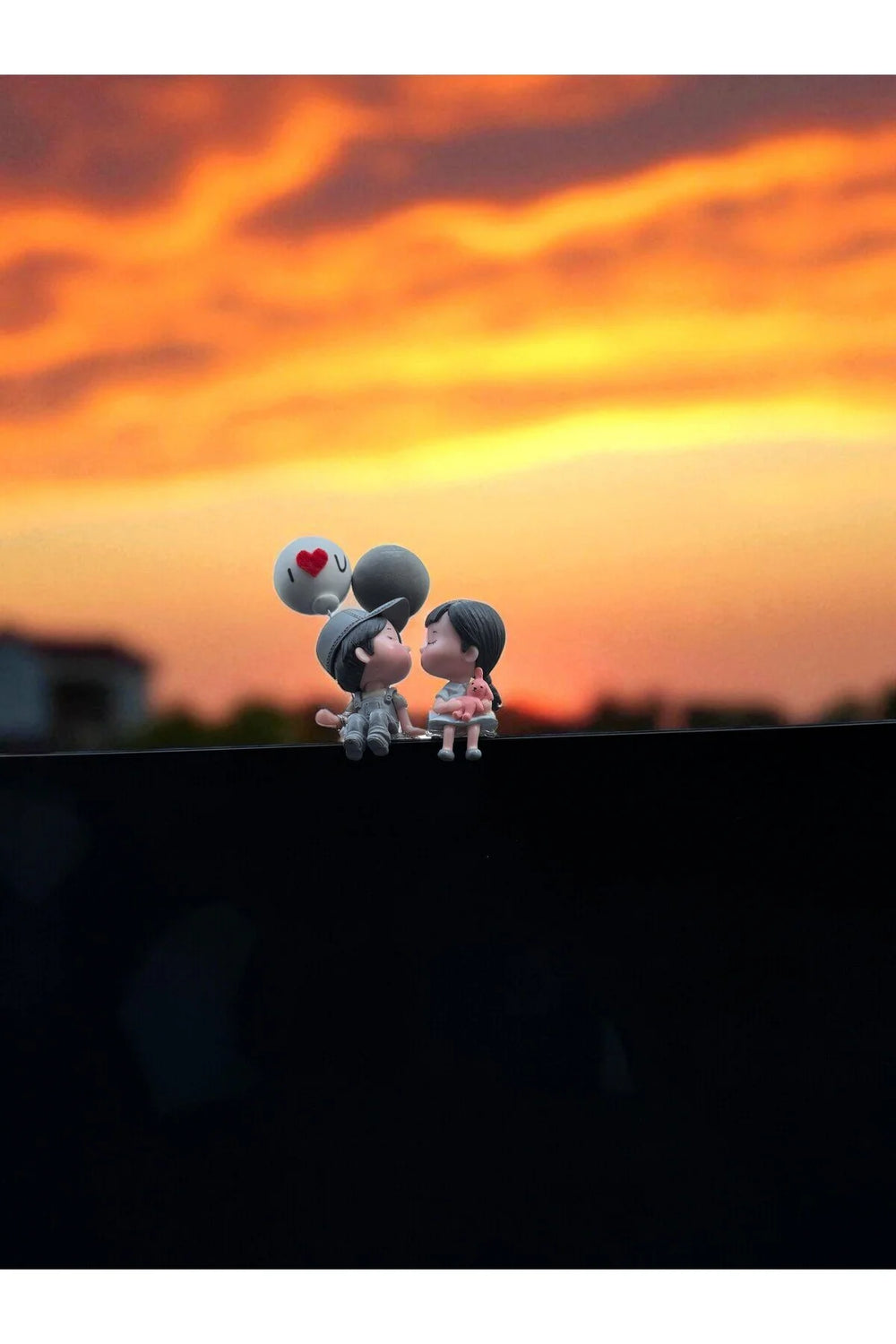 Romantik Balonlu Çift Araba Aksesuarı – I Love You Yazılı Dekoratif Figür